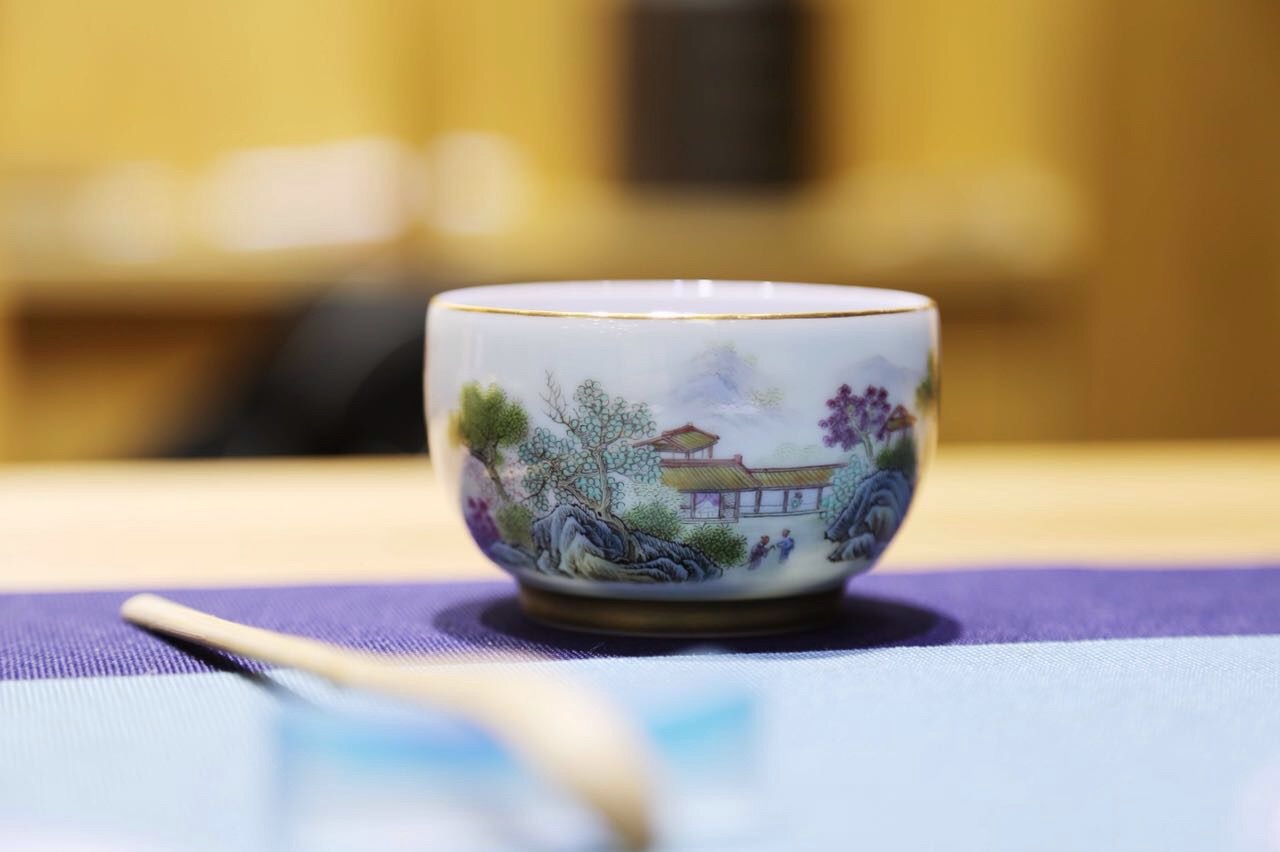 全て景徳鎮職人の手作りの茶器です。ひと筆ひと筆丁寧に書かれた山水画を見て頂ければ端正込めて作られたものだとわかっていただけると思います。この茶器にお茶を注ぐとなんとも言えない優雅な風情が出てきます。どれもがコレクション価値のある芸術品です。