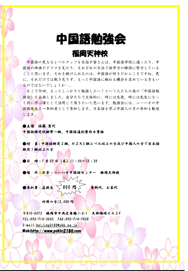 ●場 所:北京・ニーハオ中国語センター 福岡天神校