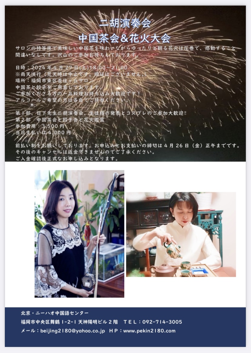 第1部、日下先生二胡演奏会、生徒様の発表とコスプレのご参加大歓迎‼