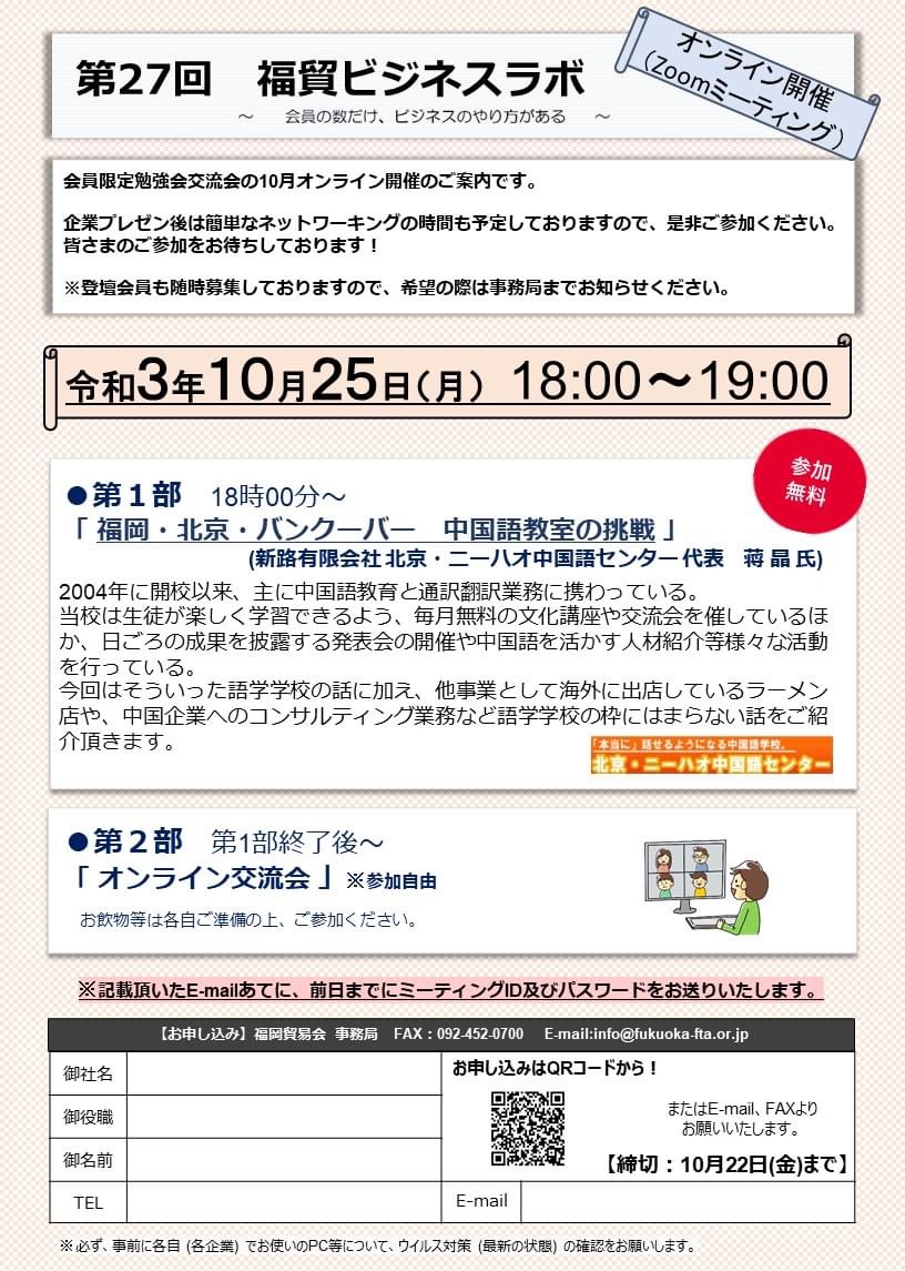10月25日(月)に福岡貿易会様主催の「福貿ビジネスラボ」が開催されます。