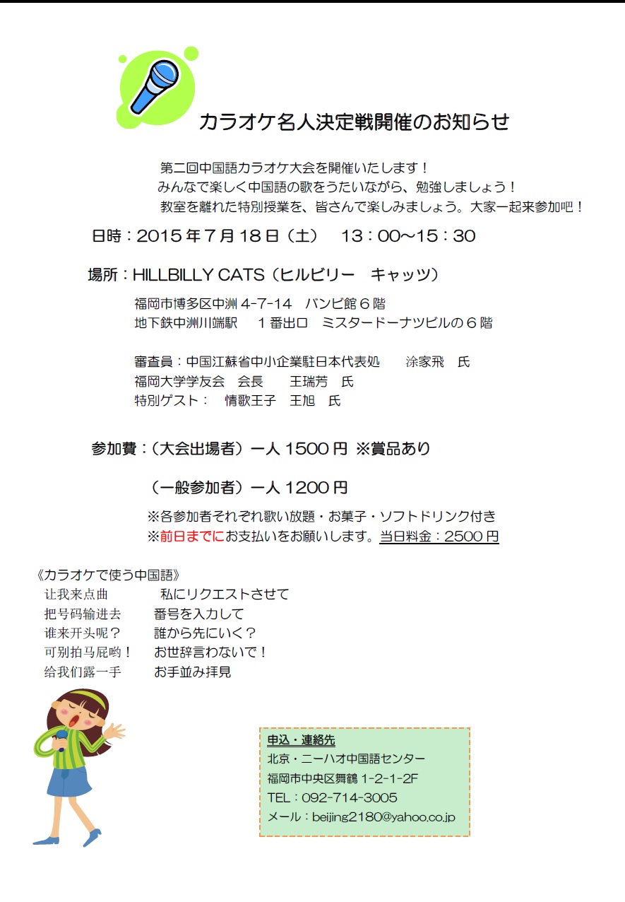 終了!カラオケ名人決定戦開催のお知らせ 福岡天神校
