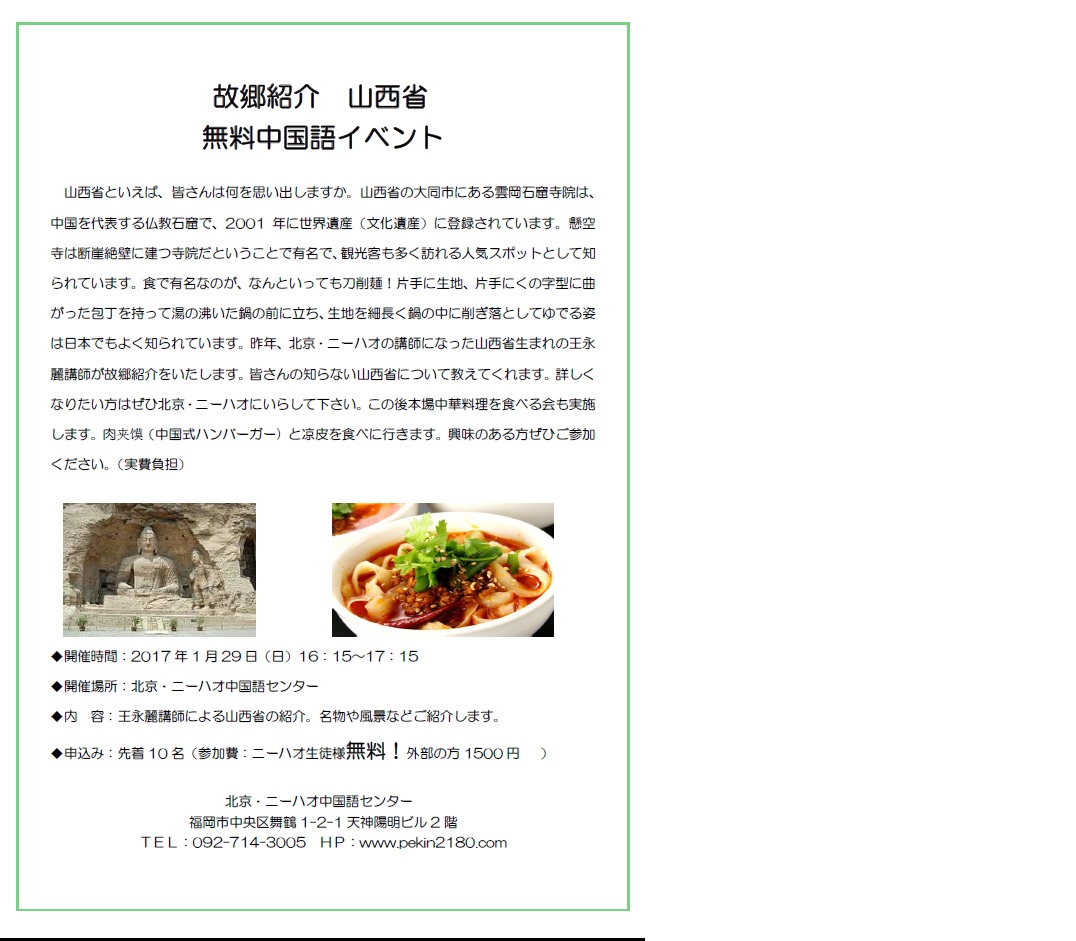 終了!故郷紹介 山西省 無料中国語イベント