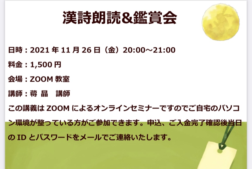 この講義はZOOMによるオンラインセミナーですのでご自宅のパソコン環境が整っている方がご参加できます。申込、ご入金完了確認後当日のIDとパスワードをメールでご連絡いたします。
