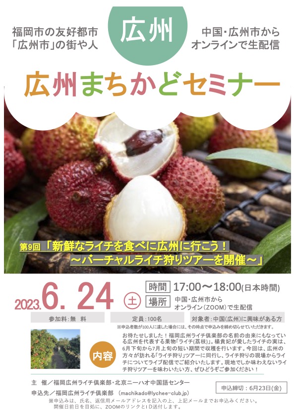 【主 催】福岡広州ライチ倶楽部、北京ニーハオ中国語センター