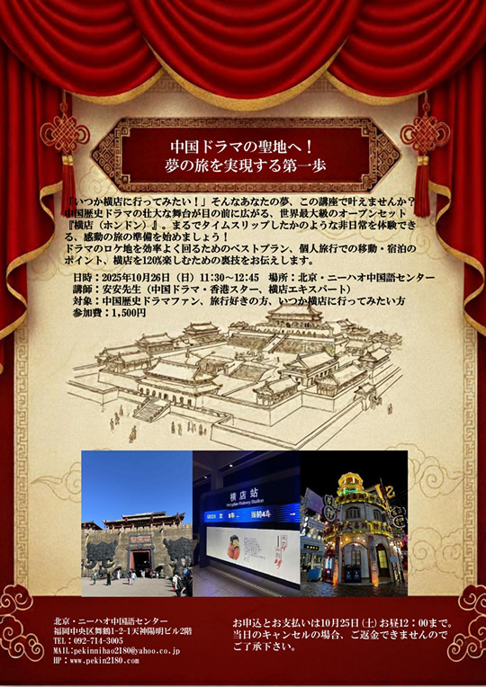 「いつか横店に行ってみたい!」そんなあなたの夢、この講座で叶えませんか?