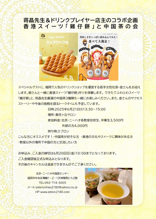 蒋晶先生&ドリンクプレイヤー店主のコラボ企画 香港スイーツ雞仔餅と中国茶の会