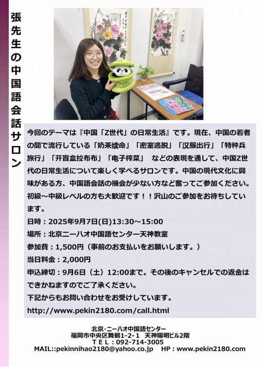 福岡天神中国語教室 張先生の中国語会話サロン
