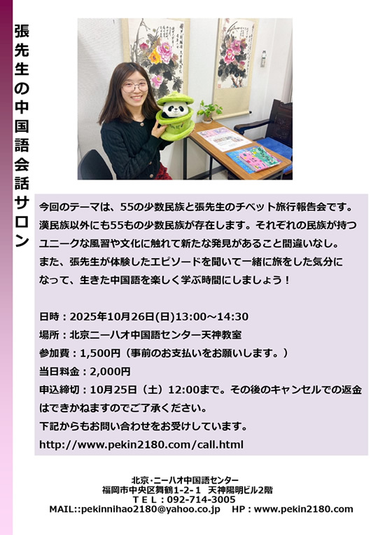 また、張先生が体験したエピソードを聞いて一緒に旅をした気分になって、生きた中国語を楽しく学ぶ時間にしましょう!