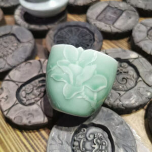 上品で温もりのある青緑色が美しい青磁の茶杯で、